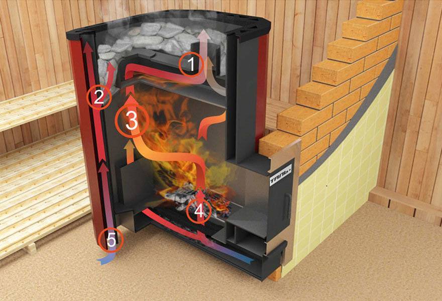 Современные же металлические банные печи куда более безопасны. Изготавливаются они в основном из листового железа в 4-5 мм толщиной, с продуманной специальной тепловой камерой для каменной засыпки. Часто их конструкция предусматривает и бак для воды – даже до 70 литров объемом. Но самое главное – металлическая печь обязательно выкладывается огнеупорным кирпичом. Ведь только так можно избежать ожогов и позволить воздуху разогреваться равномерно.