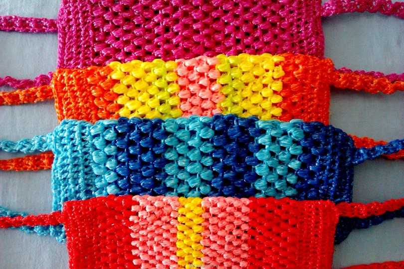 Некоторые рукодельницы умудряются вязать мочалки даже из полиэтиленовых пакетов. Пакеты для мусора сейчас выпускаются ярких расцветок, и если выбрать самые мягкие, то наверное такие мочалки имеют право на существование. Особенно этот способ актуален для тех, кто не смог купить в магазине полипропиленовые нитки, а связать мочалку очень хочется. Формы мочалки и способы вязания будут такие же, как и из полипропиленовой пряжи.