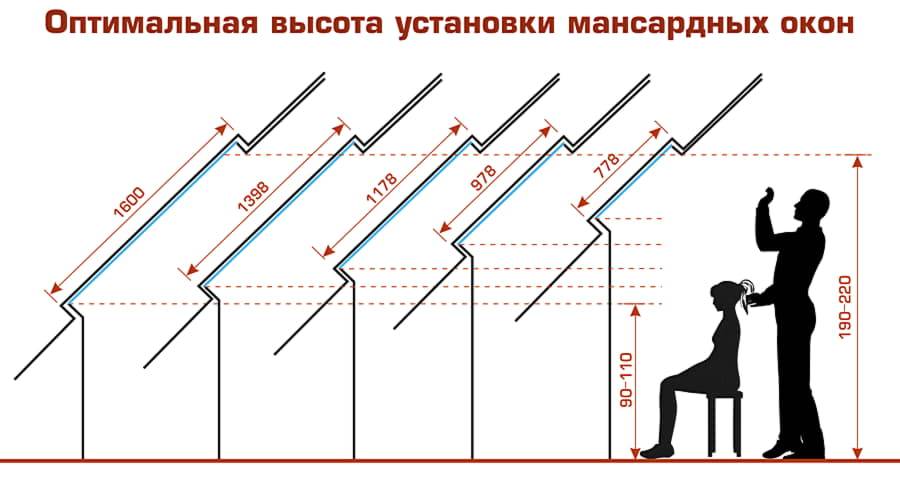 Исходить нужно из того, что окно должно обеспечивать достаточное естественное освещение мансардного помещения – как минимум на уровне 10%, хотя оптимальным считается значение 15–20%.