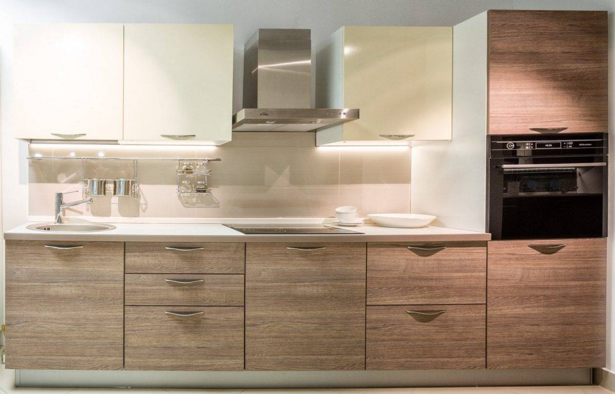 - при покупке доступной конструкции обязательно делается подсветка, которая позволяет хорошо осветить рабочую зону и все элементы, которые находятся в ящиках или шкафах, поскольку только такое обустройство позволит значительно облегчить процесс использования гарнитура для приготовления пищи.