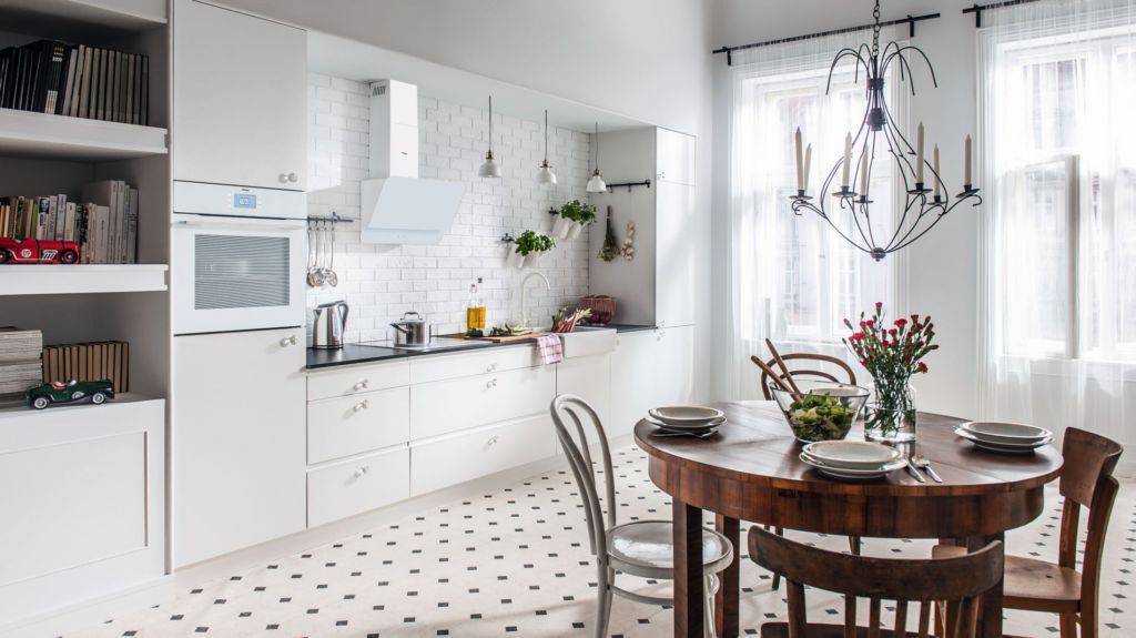 Тут с большего вкусовщина, но есть один универсальный вариант — белая кухня с деревянной столешницей. Это идеальный вариант по комбинации внешнего вида, цены и практичности. А ещё их практически нереально испортить. Серьёзно, многие пытались и делали всё остальное просто ужасно, но получалось всё равно как минимум неплохо.