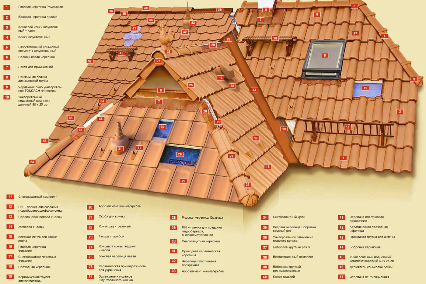 Элементы крыши черепичной крыши