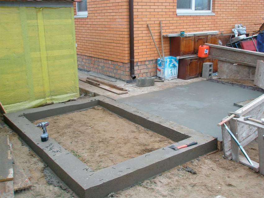 - в местах для опор отрываем ямы под опоры, глубина не менее 20…30 см, размер под размер опоры (примерно 400х400 мм);