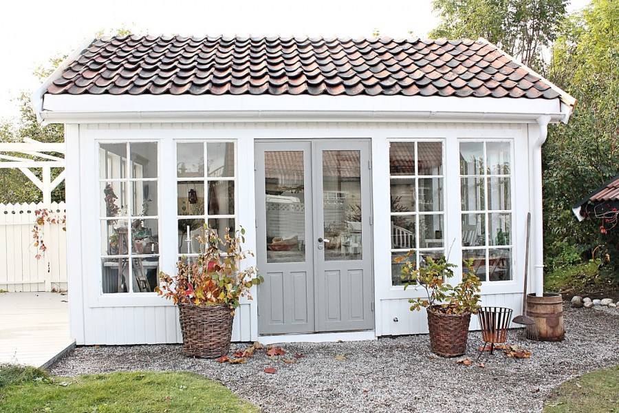 В приоритете, конечно, древесина во всех видах и формах. Деревянный садовый сарайчикЗачастую дерево даже не покрывают краской, оставляя его в естественном виде. Но от защитных пропиток я бы все же не стала отказываться. Интересное решение для деревянного садового сараяКстати, один из наших читателей нашел весьма оригинальное решение отделки сарая корой — смотрится очень эффектно!Кирпичные сараи подойдут тем, кто хочет обзавестись основательным строением. Добротная постройка из кирпичаСовсем не обязательно копировать предложенные идеи: перерабатывайте и изменяйте их по своему усмотрению, дополняйте приятными вам деталями. Ведь это ваш садовый сарай, и только вам решать как сделать его украшением дачного участка.