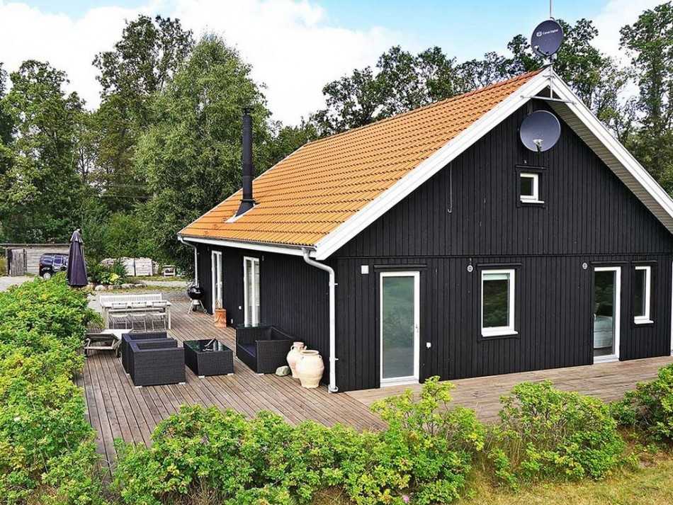 Природная возвышенность с подветренной стороны защищает обитателей дома от ветров и создает ощущение уединенности. Для отделки стен здания использована древесина темных оттенков. Это подчеркивает экстравагантность и оригинальность этого маленького домика, а в сочетании с большими стеклянными окнами придает ему элегантности и неповторимости.