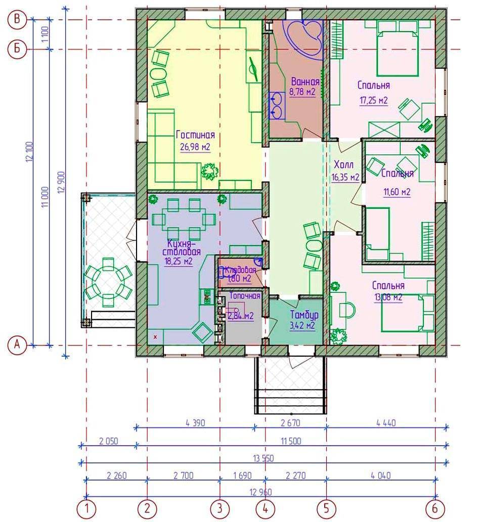 Планировка одноэтажного частного дома площадью до 150 кв. м
