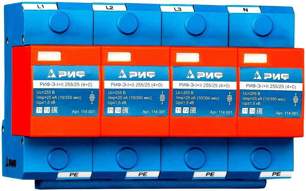 - Класс С — варисторные модули с токами разряда порядка 40 кА. Устанавливаются в дополнительных щитах.