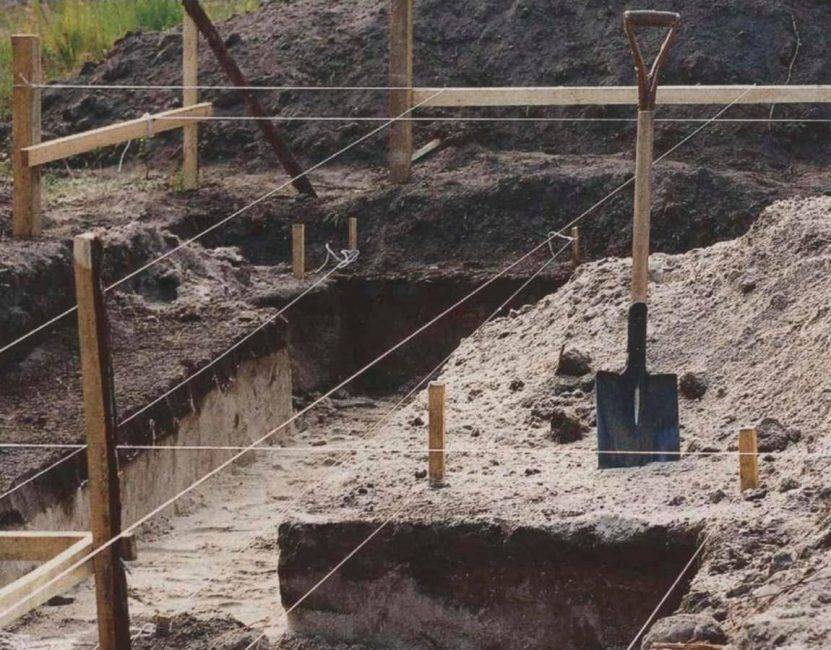 Установка опалубки для ленточного фундамента на неустойчивой почве