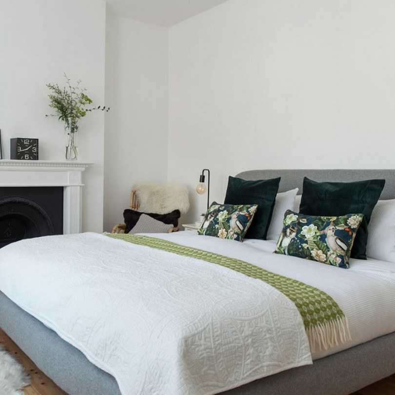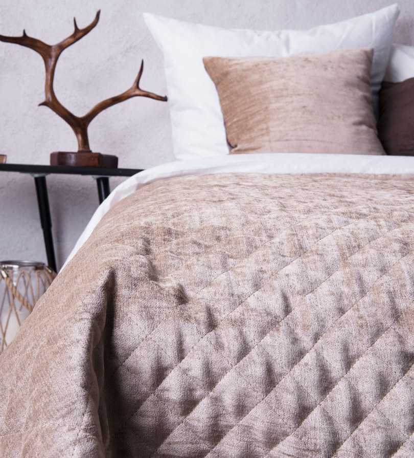 Стильно в современной спальне будут смотреться велюр, квилт и монохромные стеганые одеяла и покрывала