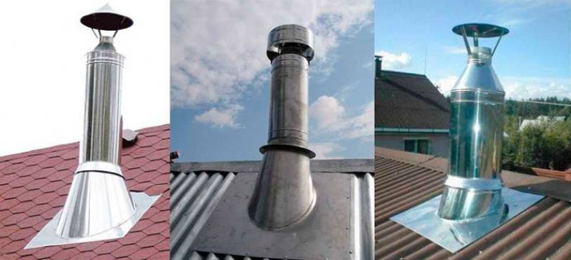 Над крышей поднимают не только дымоходы от печек, каминов и прочих твердотопливных устройств. Туда же выводят выхлопные трубы от газовых обогревателей, а также трубы вентиляции. При их монтаже применяют точно такие же методы, как и для печных труб.