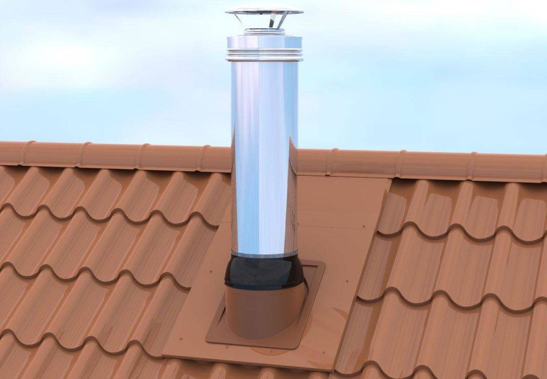 Гидроизоляция дымохода из оцинкованной стали на крыше из профнастила