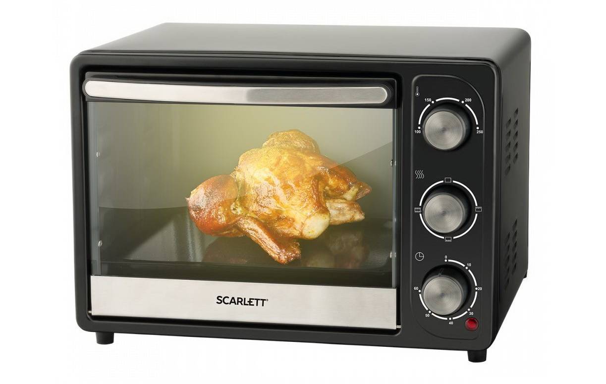 Мини-печь мощностью 1,6 кВт и рабочим объемом 30 литров имеет отличительную особенность: вертел для запекания целой курицы. В остальном набор функций довольно стандартный: регулировка температуры, таймер с автоматическим отключением, режим переключения верхнего/нижнего нагревателя или их совместное включение. Управление механическое. Гарантийный срок – 1 год, срок службы – 3 года (по паспорту).