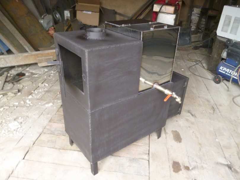 Самодельные банные печи из металла со встроенными баками сложны в изготовлении. Нужны профессиональные навыки сварщика, чтобы изготовить герметичную конструкцию.