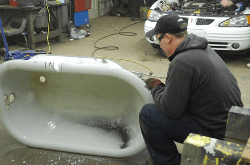 При работе необходимо соблюдать условия безопасности. На лицо лучше надеть защитную маску, иначе мельчайшие частицы эмали могут попасть в глаза. При резке чугуна образуется большое количество пыли – дыхание необходимо защитить марлевой повязкой или респиратором. Помещение, где проводятся работы, необходимо изолировать от смежных помещений – уборка пыли впоследствии доставит серьезные трудности.