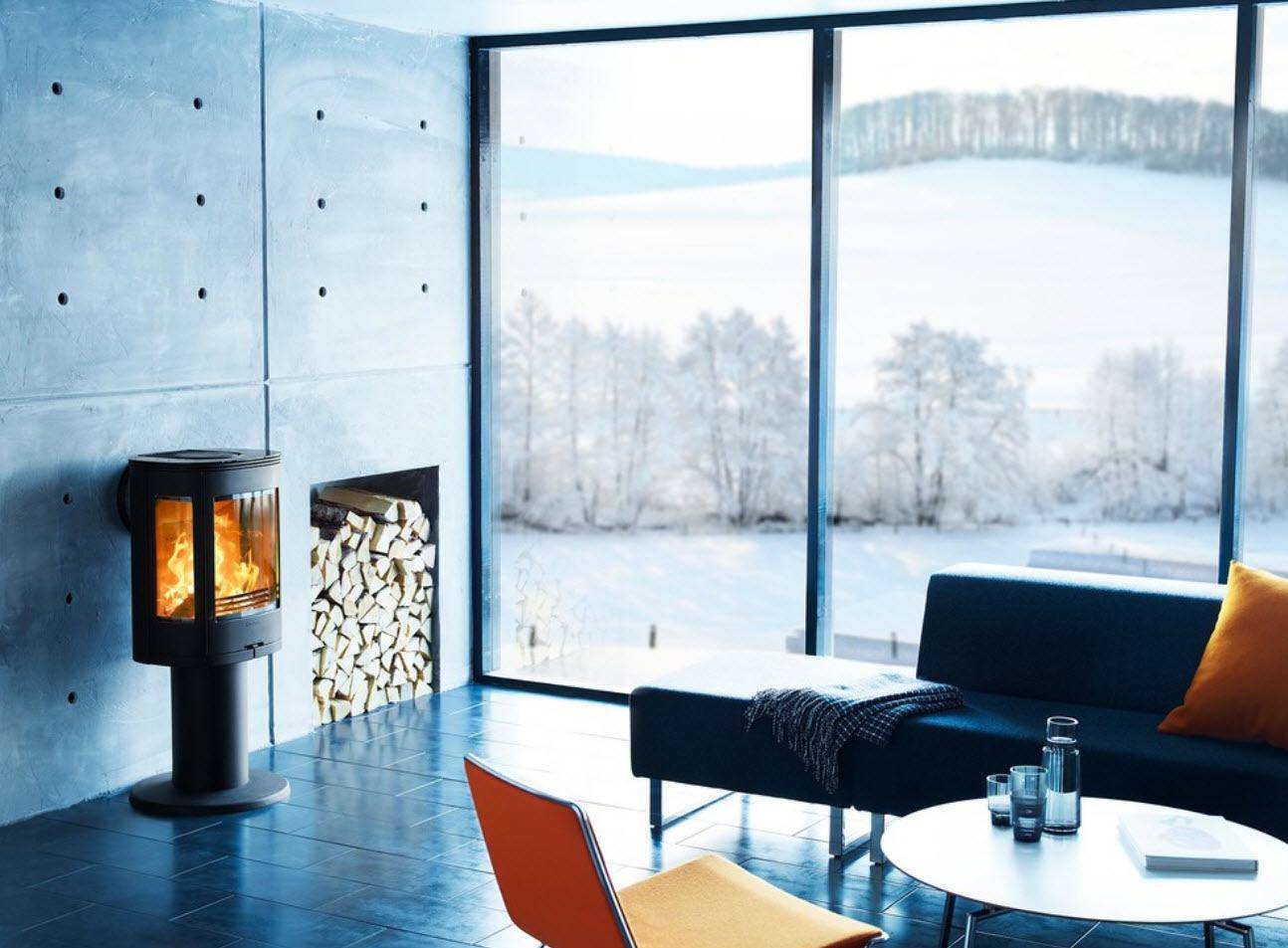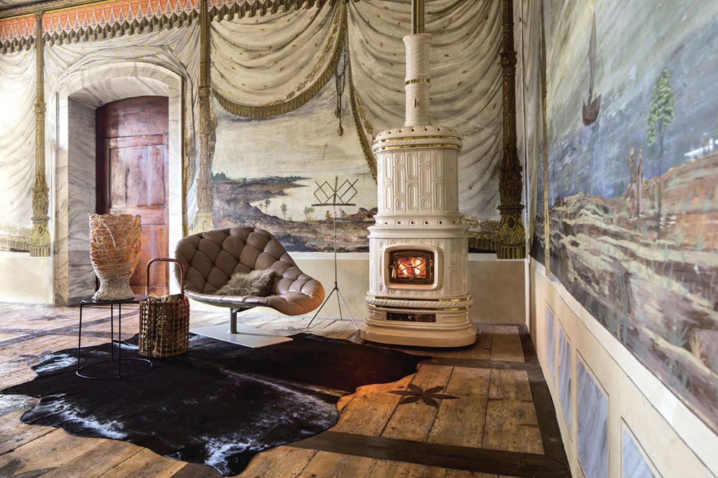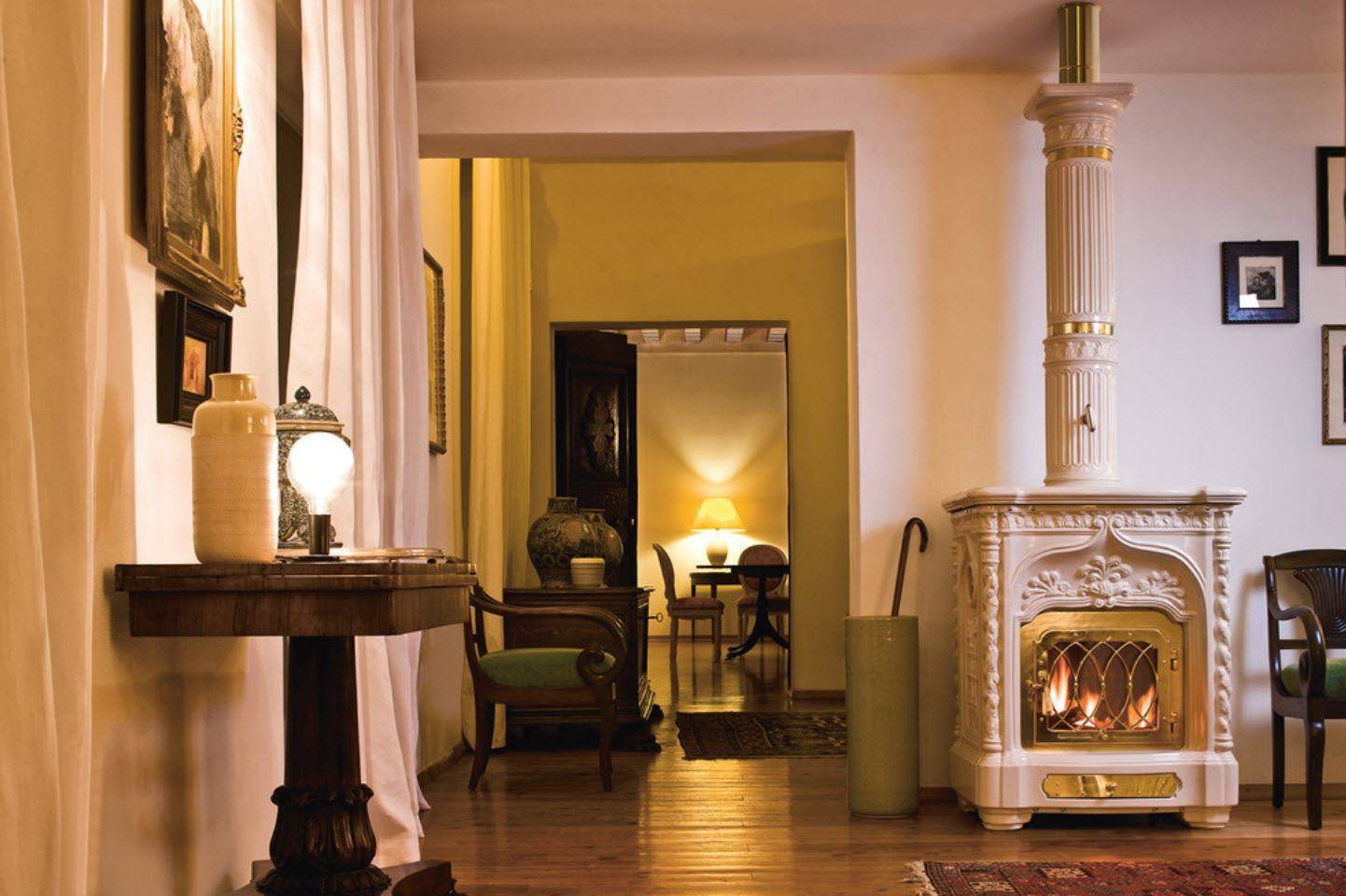 Вариативность установки печи-камина делает её универсальным обогревателем для самых разных по объёму и назначению помещений.