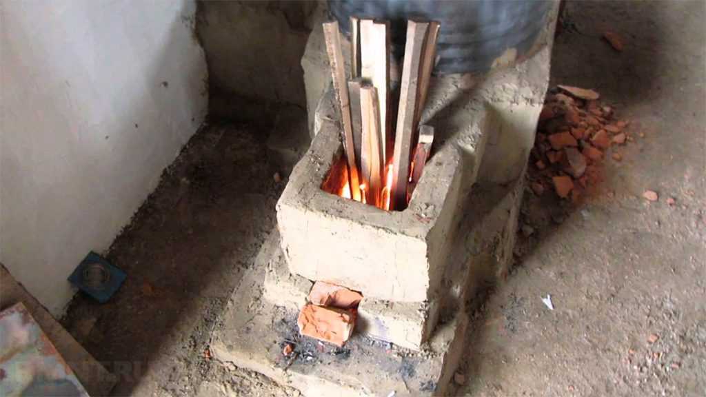 Печи-ракеты, равновелико как и другие конструкции длительного горения, нуждаются в запуске на теплую трубу. И если для второго варианта печи это не столь значительно, то для первого холодный дымоход приведет только к напрасному сожжению топлива. По этой вину конструкция нуждается в предварительном разогреве – протопке опилками, бумагой и проч.