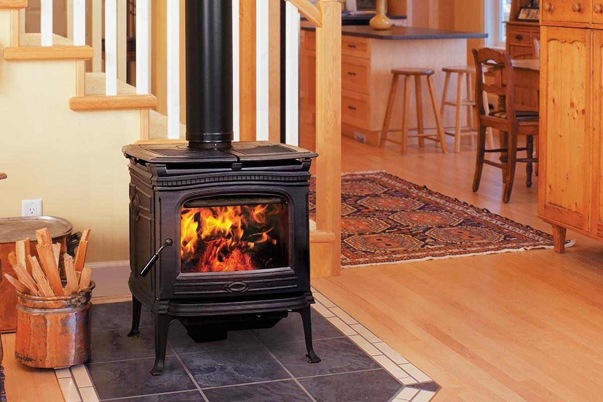Печь-камин нужно устанавливать на покрытие, которое не горит