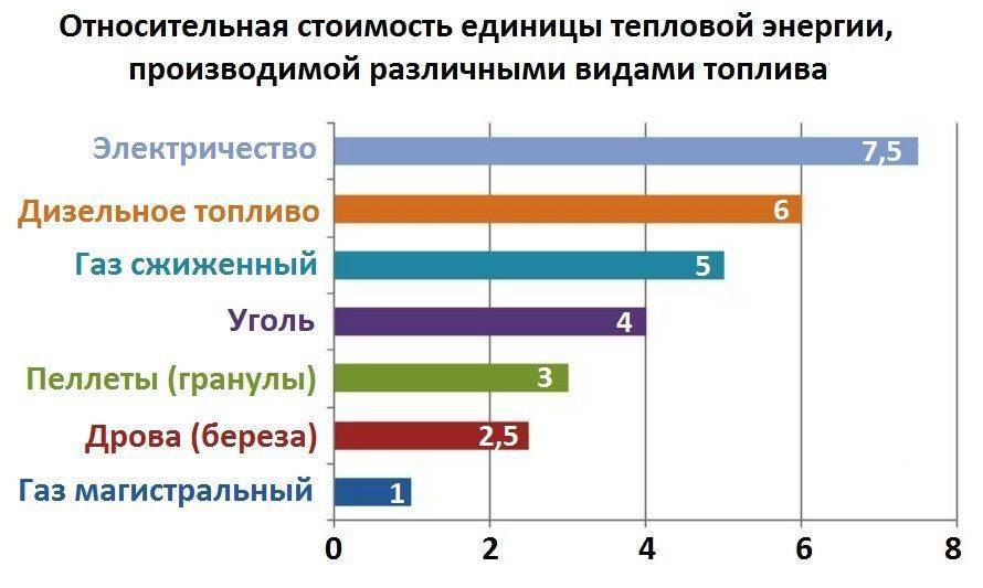 Соотношение стоимости 1 кВт час тепловой энергии, производимой различными видами топлива