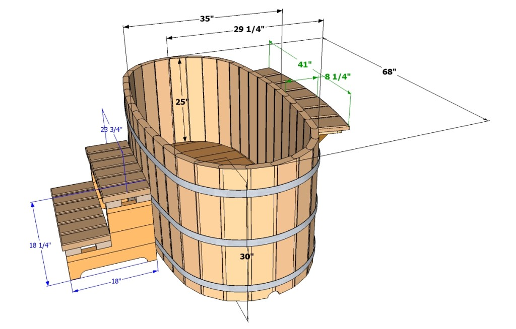 Сразу надо определиться с формой деревянной бочки, конструкцией ступеней или лестницы