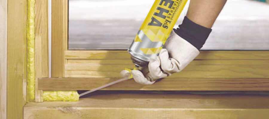 После проделанной работы уплотненная лента оставляется на несколько часов, чтобы она могла достичь полного расширения. Чтобы ускорить этот процесс можно воспользоваться строительным феном. После высыхания теплоскотча интервал между откосом и профилем обрабатывается монтажной пеной.
