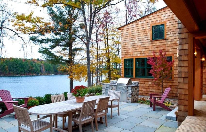 - в то же время, оно не может находиться и слишком далеко от дома, чтобы можно было быстро взять необходимые продукты из холодильника, а не бегать через весь участок;