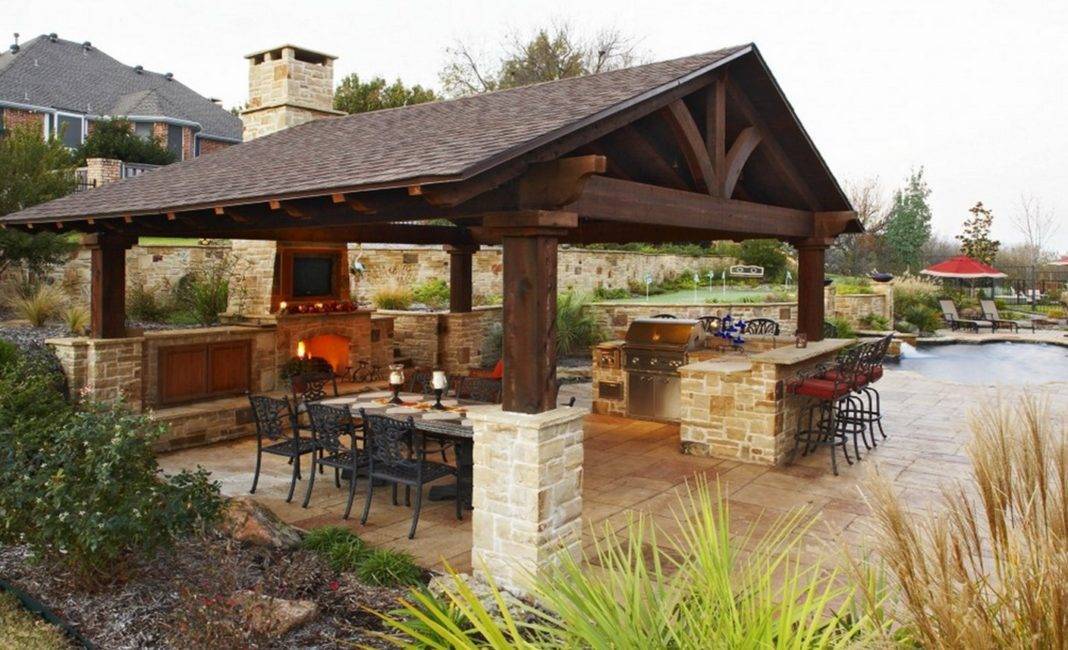 Конструкция его ограничена только вашей фантазией. Опорами для него могут служить металлические трубы, колонны из кирпича или камня, монолитная стена. Главное при сооружении навеса: обеспечить функциональность, комфортное пребывание под ним во время пикника невзирая на погоду, соответствие общему дизайну ландшафта.
