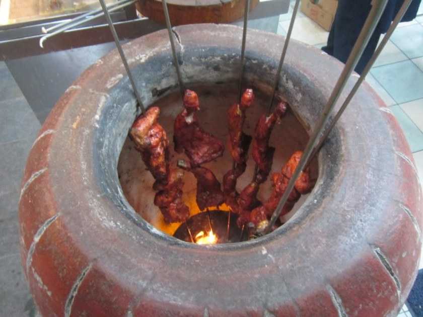 - Внутрь тандыра на специальных шампурах загружаются продукты для готовки — мясо, птица, рыба и т. д.