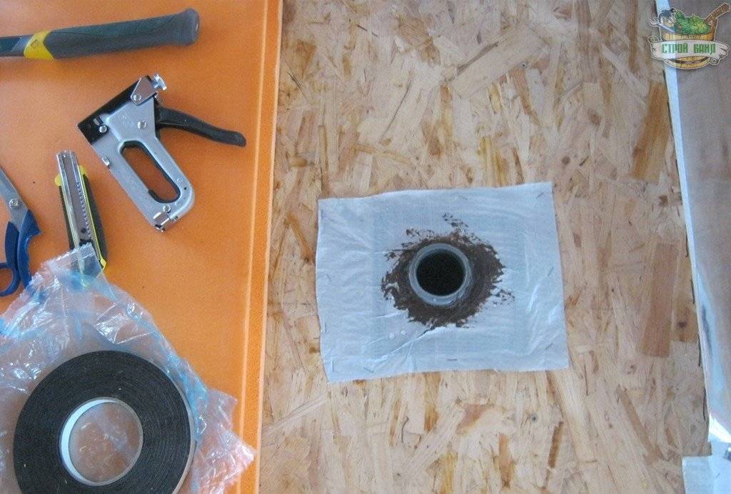 Гидроизоляция слива с помощью пленки «Изоспан» и герметика