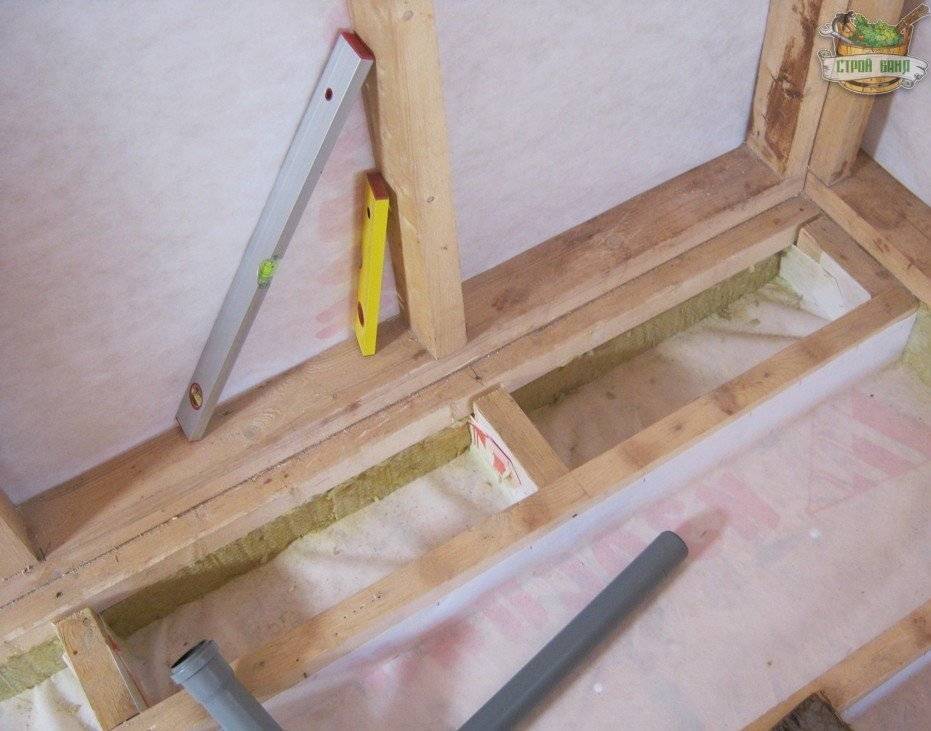 Утеплитель «Rockwool» уложен в нишах под обвязкой стен