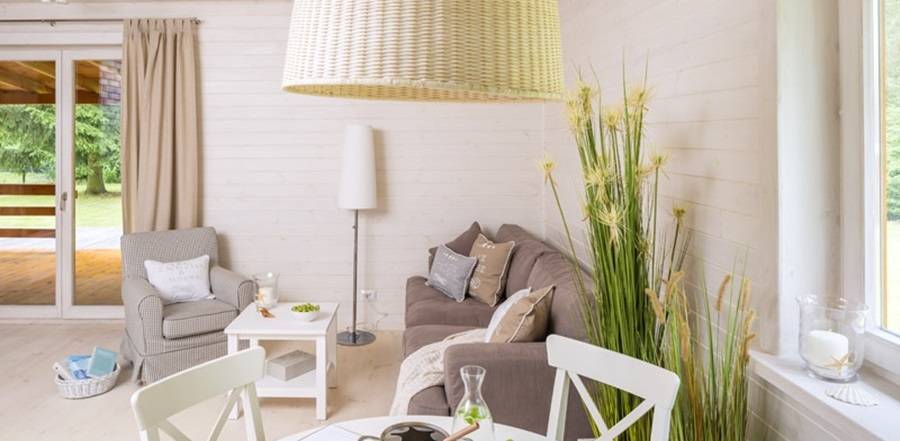 Разнообразить древесные элементы можно камнем, кирпичом, плиткой или пластиком. Модернистские ноты в более редкой для наших мест стилистике, как восточная, английская, дополнит соответствующая мебель, зеркала, картины, люстры, ткани и прочие аксессуарные тонкости.