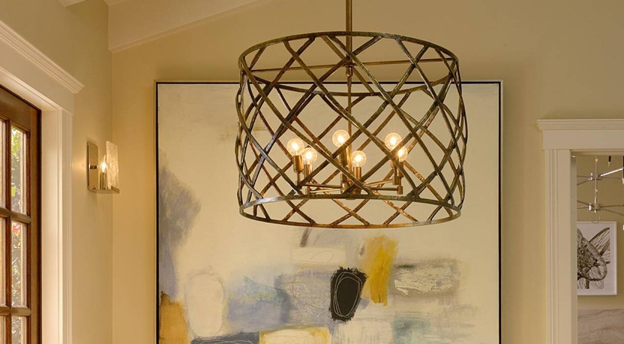 Вот наглядный пример удачной комбинации разнофактурных плафонов, которые подобраны для зрительного разделения пространства. Часто к этому приему приходится прибегать в однокомнатных квартирах, чтобы визуально отделить одну зону от другой. Плетеная модель очерчивает пространство столовой, а спокойный тканевый напольный «собрат» – гостиную.