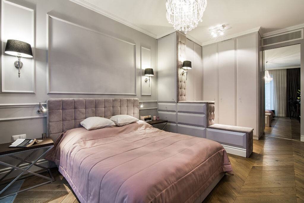Прежде всего, следует определиться с материалами для отделки помещения. Этот момент крайне важен для начала ремонта. Необходимо приложить все усилия, чтобы отделка в итоге визуально расширяла спальню, а не делала ее еще длиннее.