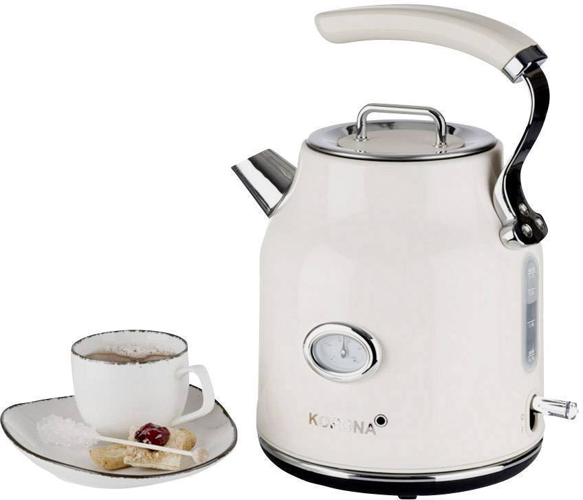 Быстро нагревает воду. Он немного весит — 1,3 кг, что упрощает использование. Он изготовлен из чрезвычайно прочной нержавеющей стали и, как и ретро-модели, также имеет функциональную съемную крышку, световой индикатор, отделение для шнура питания и индикатор уровня воды.
