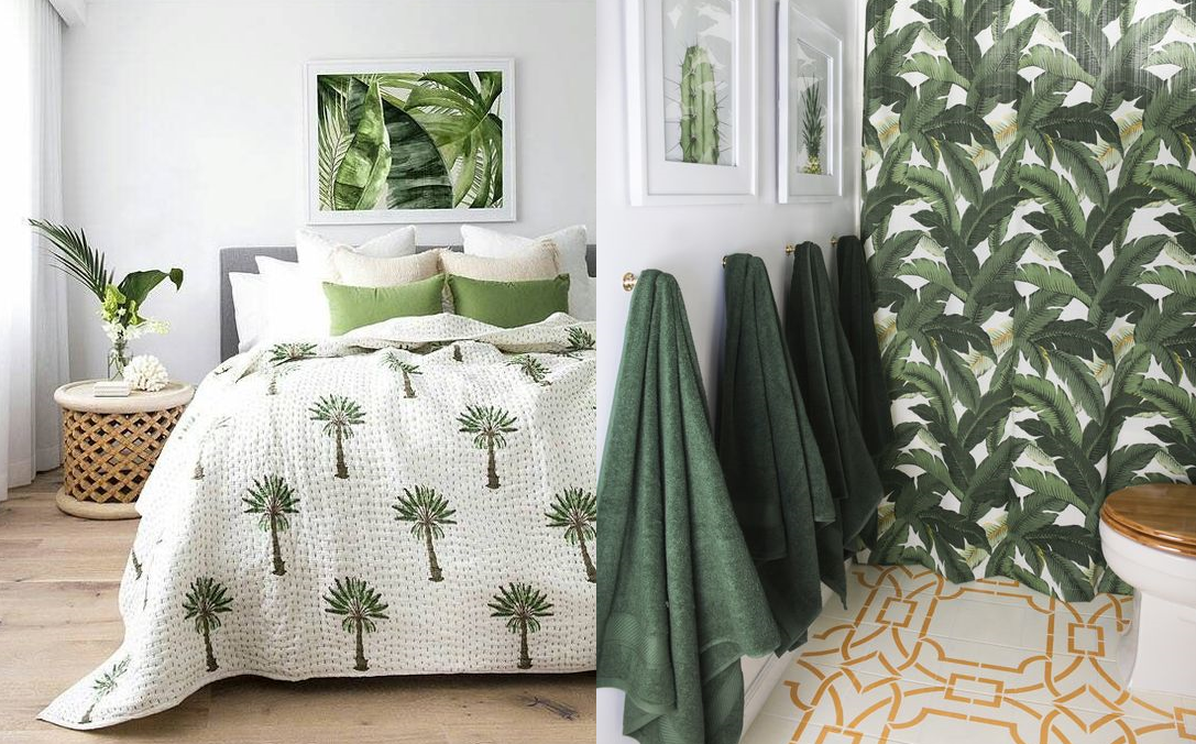 В роли аксессуаров все чаще выступают живые растения с роскошной зеленью. Более того, зачастую их можно встретить и на обоях, плитке или занавесках.
