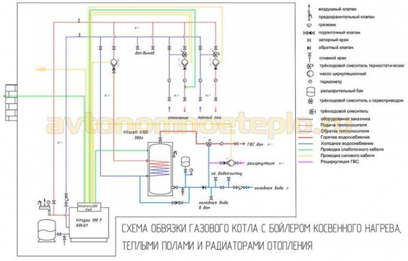 - необходимо правильно рассчитать мощность котла, при установке накопительного водонагревателя косвенного нагрева;