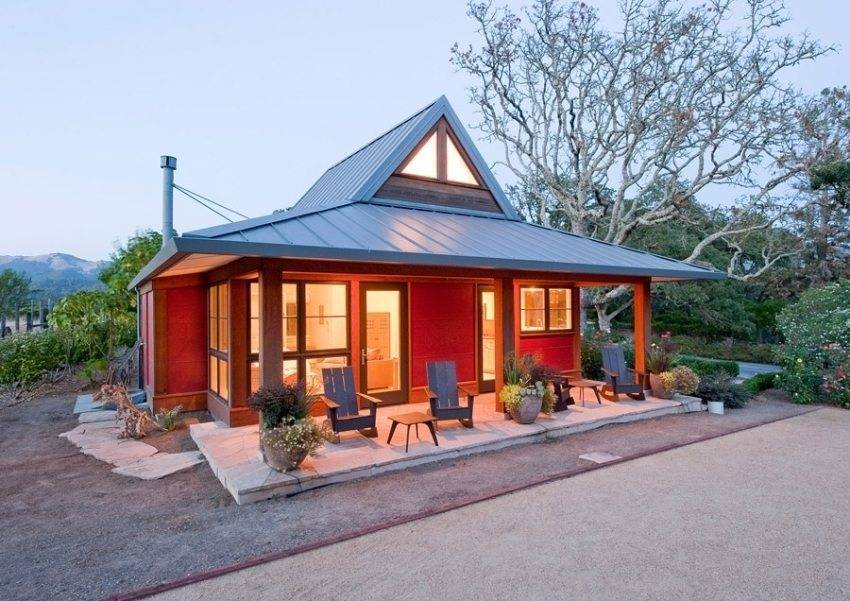 При проектировании компактного дома учитывается его назначение. Это может быть загородная дача для летнего отдыха или дом для круглогодичного проживания небольшой семьи. В первом случае в планировке больше места отводится под личные помещения хозяев, а зона дневного пребывания планируется с минимальной площадью.