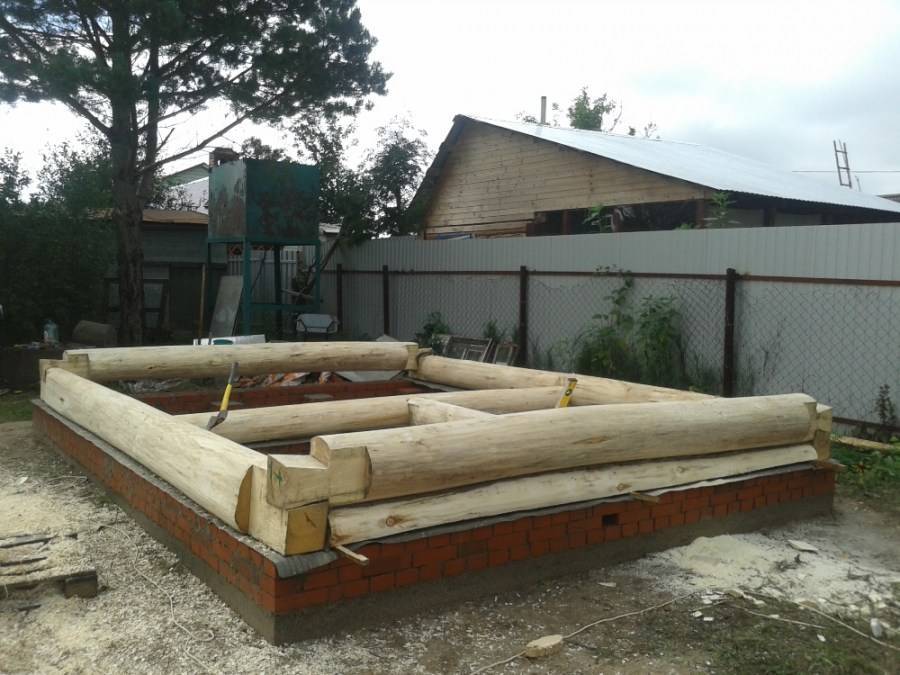 Для укладки первого венца необходимо использовать деревянные рейки толщиной в 150 мм. Перед тем как положить их на фундамент, необходимо обработать рейки антисептическим средством. Расстояние между ними должно быть не менее 300 мм. Рейки нужны для предотвращения процесса гниения. На них укладывается первый венец.