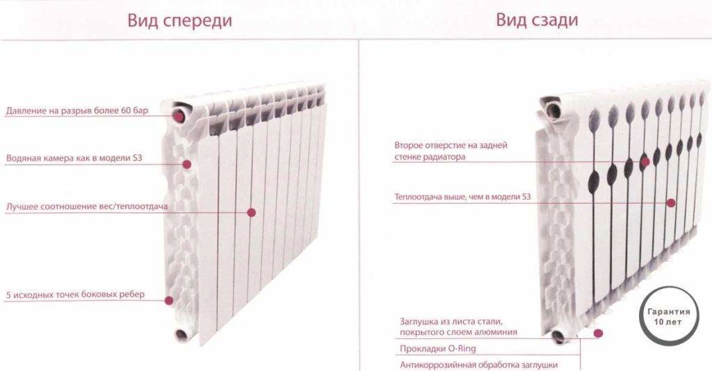 Тем не менее, перечислим основные характеристики алюминиевых отопителей и биметалла: