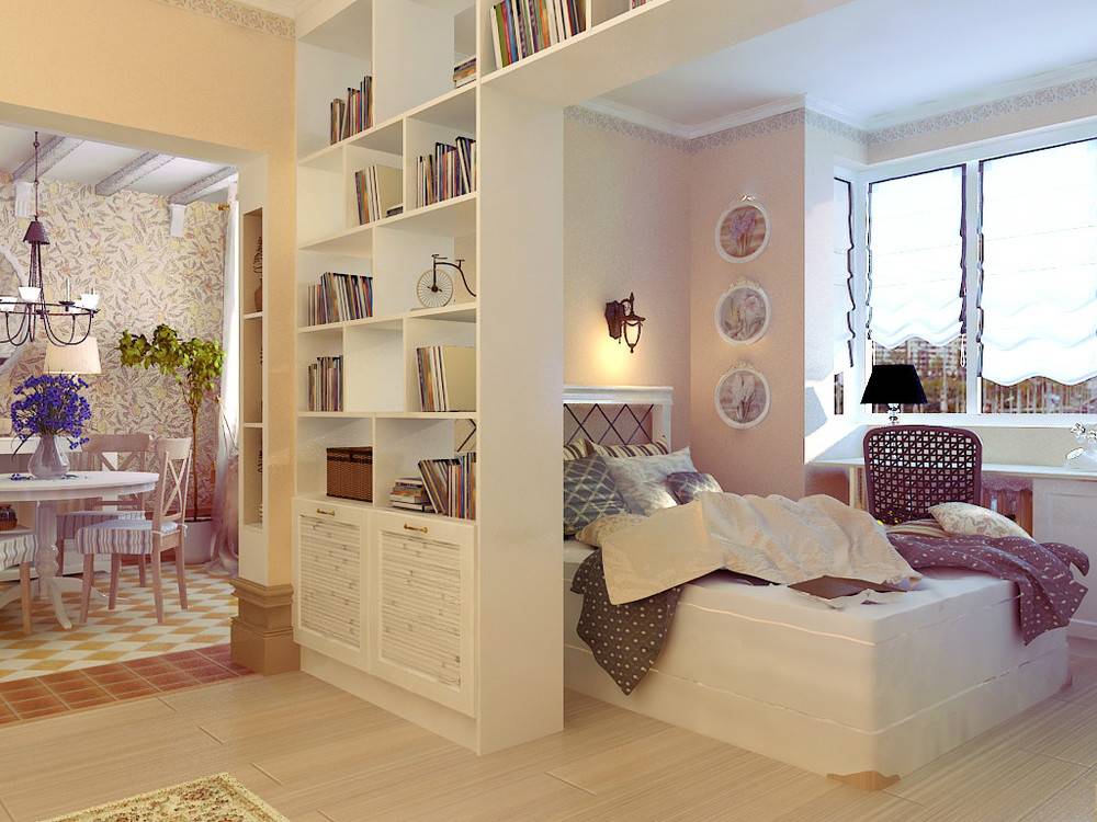 Также экономить место помогают откидная кровать-шкаф или кровать-чердак, под которой имеется место для работы. Интересным вариантом является и кровать-трансформер, которая в дневное время складывается и занимает гораздо меньше места.