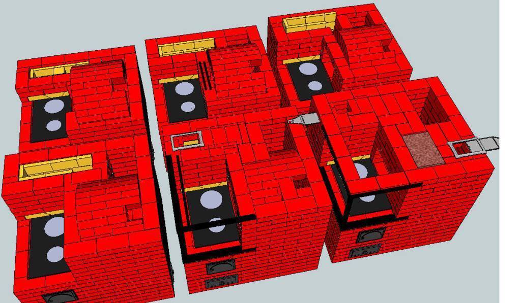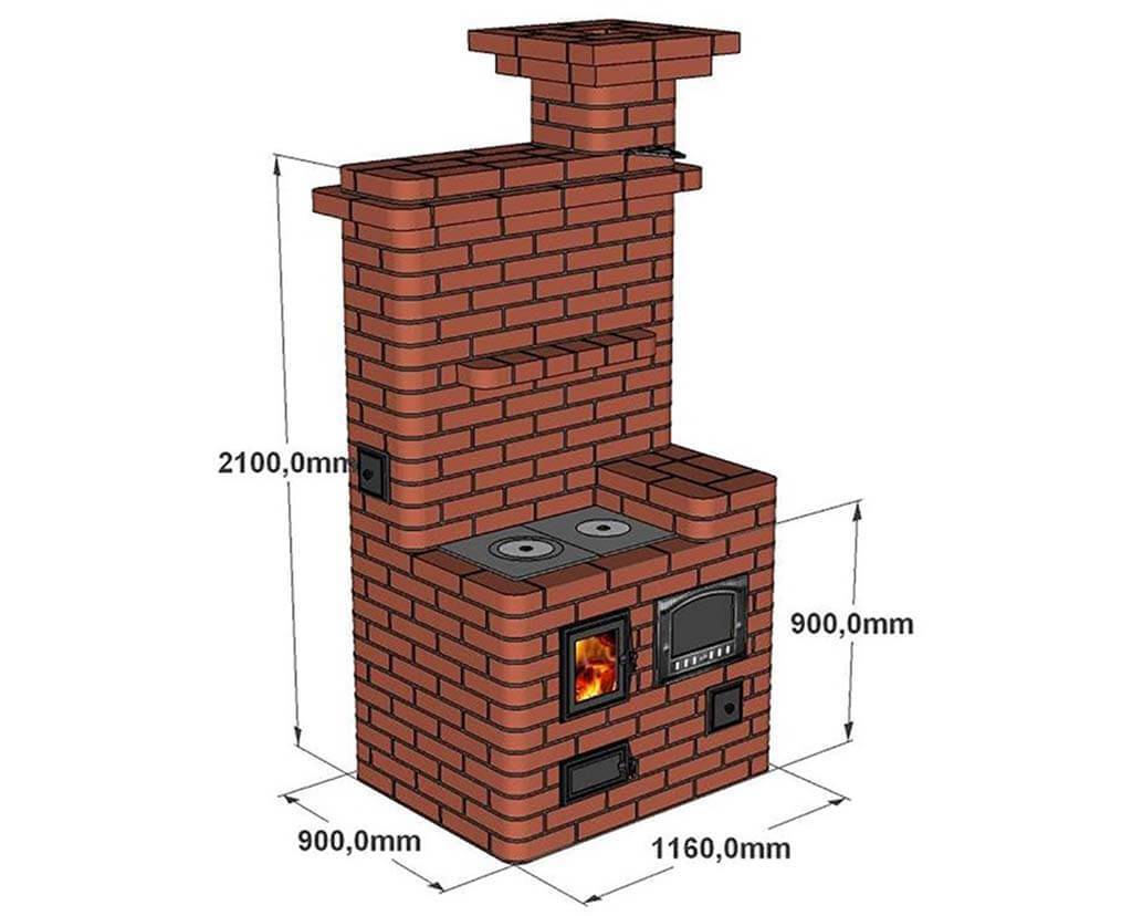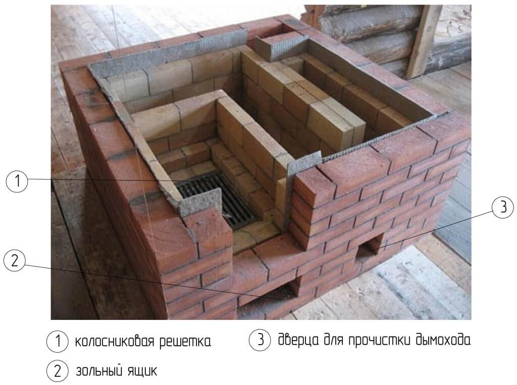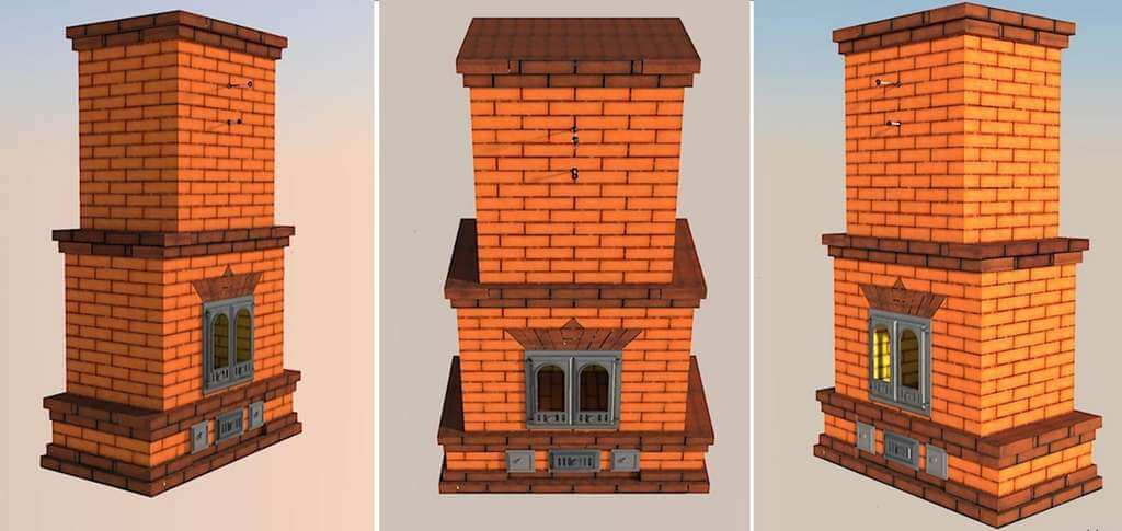 - Тело. Выполняется из кирпича, и включает в себя систему дымовых каналов.