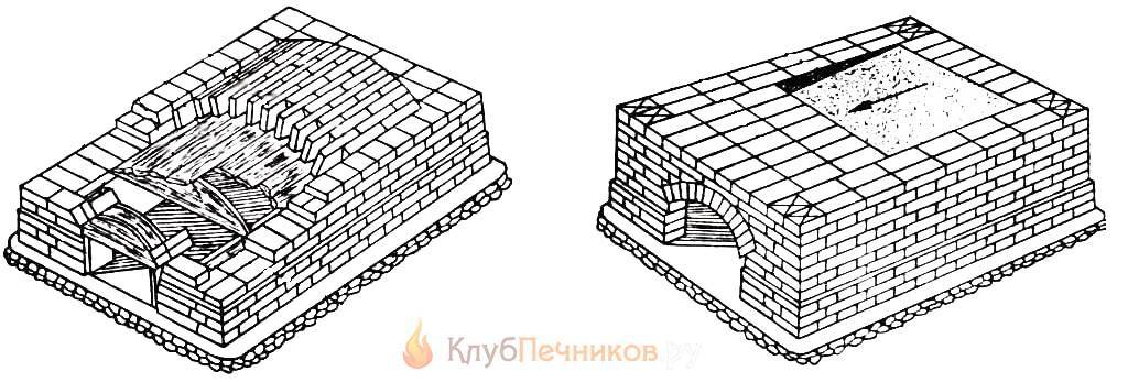 - Топливник. Устанавливается на перекрытии (арке), для его выкладки используется шамотный кирпич.
