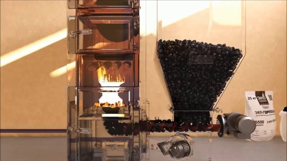 Если неподалеку от дома расположено деревообрабатывающее производство, появится возможность приобретения недорогих отходов. Их можно использовать в качестве топлива. Проще использовать спрессованные гранулы (пеллеты).