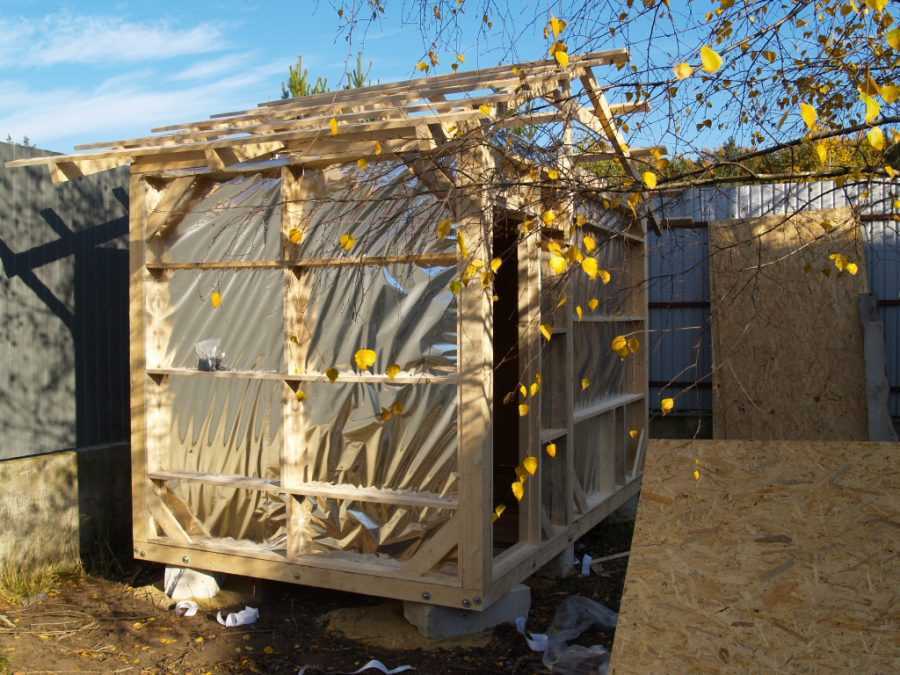 Теплоизоляция, отделка стен выполняются после крепления крыши.