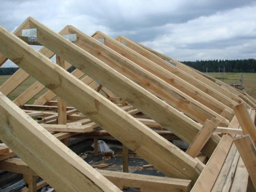 Стропильные ноги должны выходить наружу примерно на 50 см. Благодаря этому будет исключена возможность попадания влаги с кровли на стены строения.