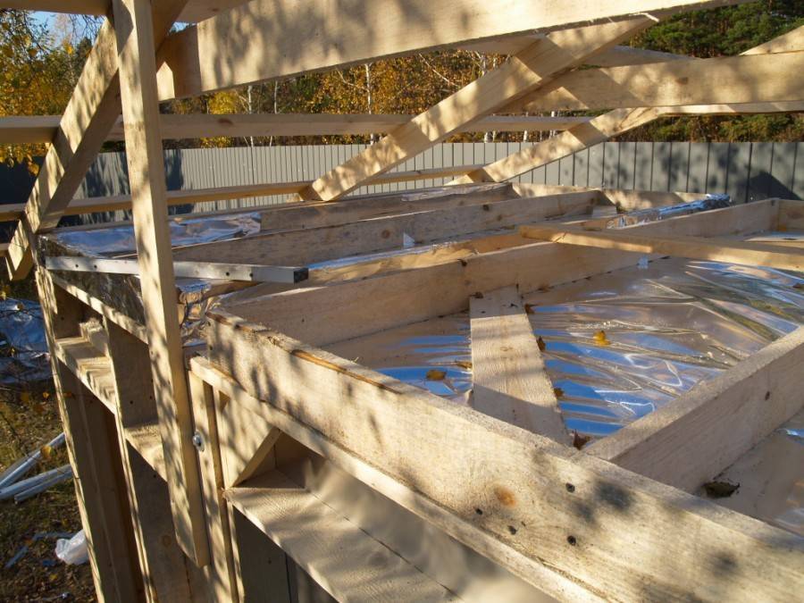 Приступайте к обустройству кровельной конструкции. Для частной сауны хорошо подойдет односкатная крыша – это простой и бюджетный вариант.