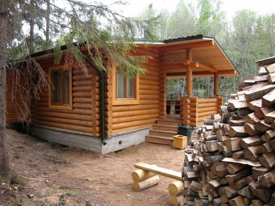 Она отличается минимумом помещений: хватит парилки и предбанника, отсутствием водоснабжения (не бояре, принесем воду и вручную, ведрами). Зато возводится быстро и на нее не надо много материала, а значит и затрат будет меньше.