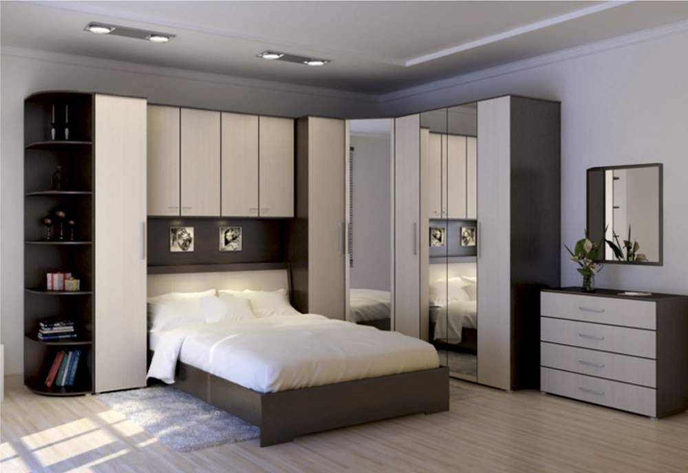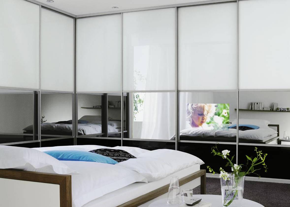 Угловой шкаф-купе в спальне, выглядит компактным и аккуратным.