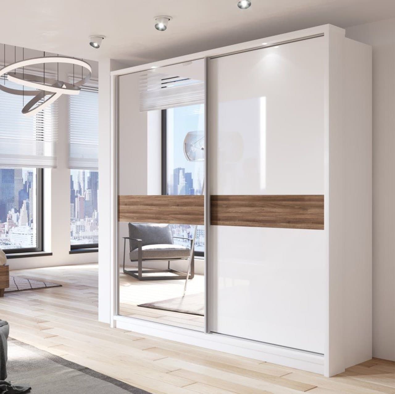 Белый шкаф-купе с зеркалом отлично подойдет для светлых помещений.