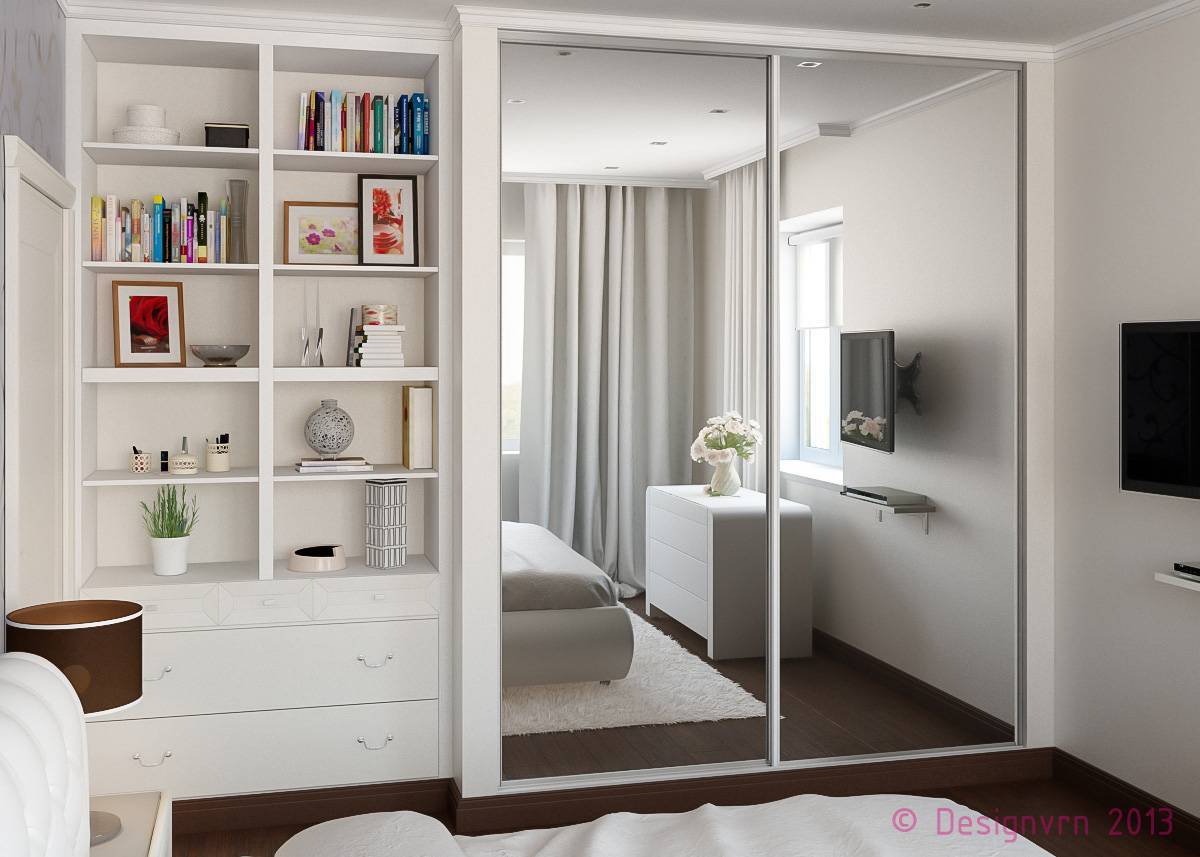 Шкаф-купе небольших размеров, аккуратно впишется в спальню средних размеров.