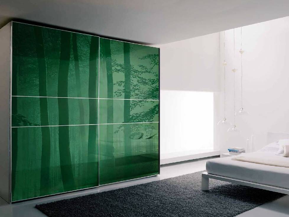 Дизайн шкафа-купе 2021 с цветным стеклом и фигурными вставками